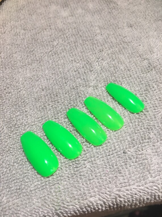 Neon Green Fake Nails Uv Cover Glossy Medium Size False Ballerina